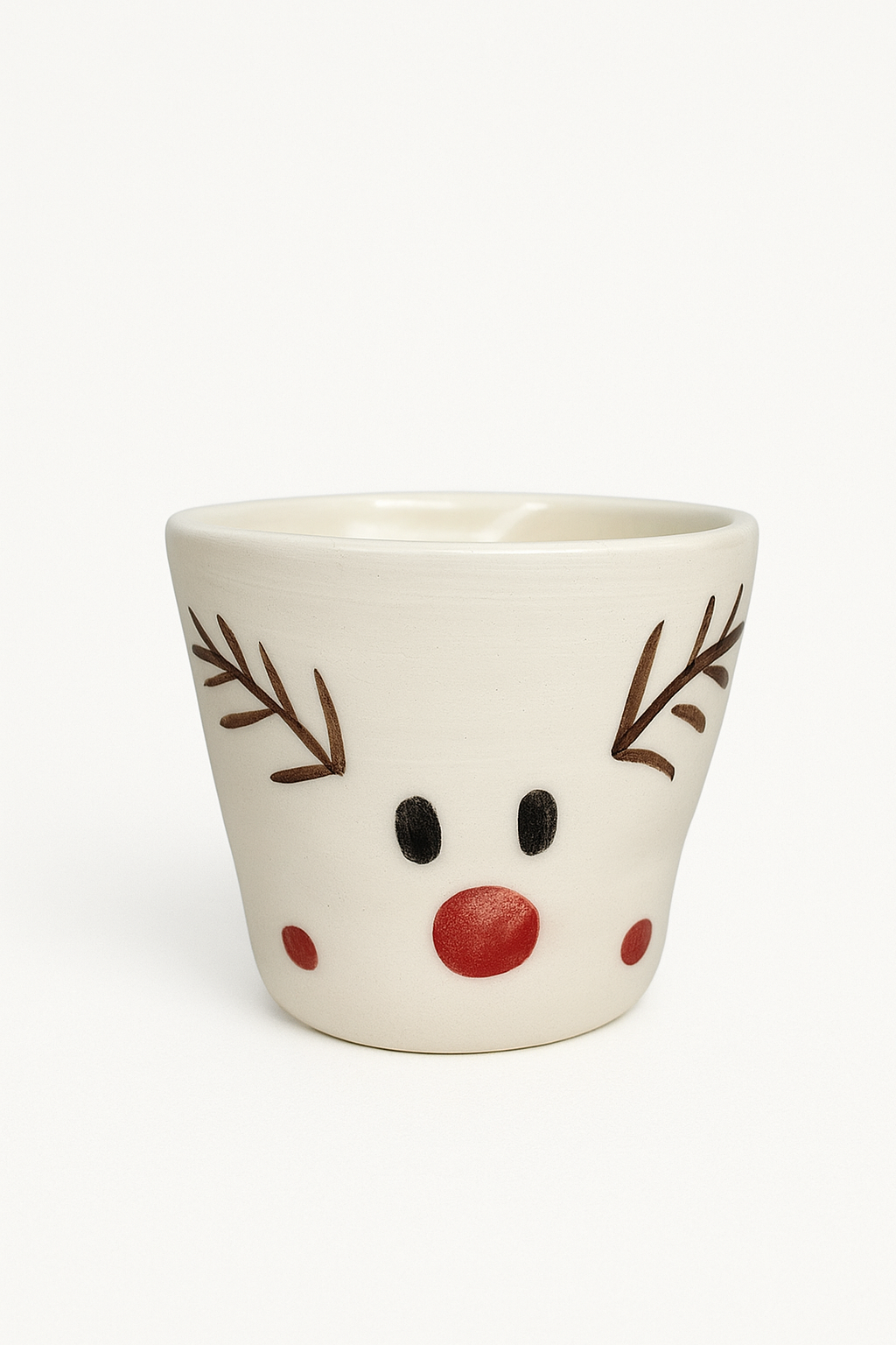Feito em faiança portuguesa e pintado à mão, o seu design delicado apresenta o adorável rosto de uma rena com o icónico nariz vermelho — um toque divertido e festivo para a tua mesa.