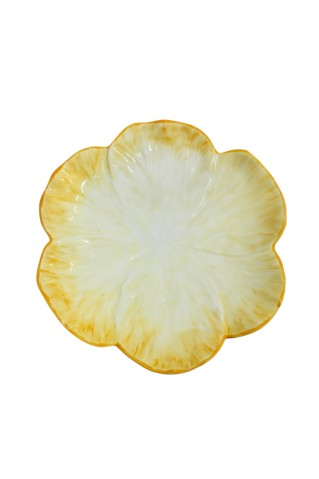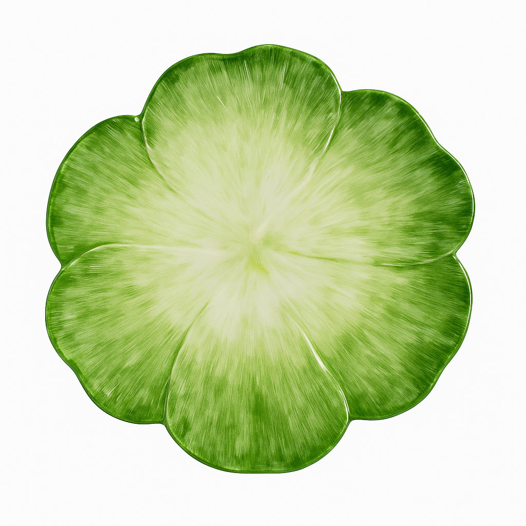 Feito em faiança de alta qualidade e pintado à mão, apresenta um formato de pétala orgânico e um degradé, que confere profundidade e um charme artesanal único.
