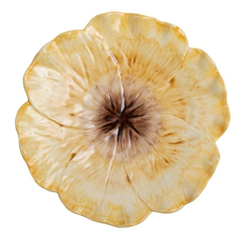 Produzido em faiança de alta qualidade e pintado à mão, apresenta um formato inspirado nas pétalas de uma flor, com uma fusão delicada de tons.